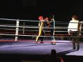 C'est au tour d'Eline. Elle commence bien son combat, les deux boxeuses se tiennent durant cette 1ère reprise. Durant la 2ème reprise Eline commence à s'imposer dans les enchainements et impose son rythme. Son adversaire faiblit. Durant la 3ème et dernière reprise, Eline débute par un jolie fouétté visage qui marque son adversaire qui tente le tout pour le tout et lance ses dernières forces en ce début de 3ème reprise. Eline ne se laisse pas impressionné, laisse passer l'orage et contre attaque. Son adversaire baisse les bras et abandonne. Eline gagne son combat par hors combat à la 3ème reprise pour un combat prévue en 4 reprise.