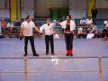 Damien est le premier à monter sur le ring. Il est opposé à Julien Bonnetaud du club de l’ACBB de Boulogne Billancourt (92). L’assaut prévu en 3x1’30 débute sur un rythme élevé ou chaque boxeur s’échange coup pour coup en variant les enchaînements techniques. La 1ère reprise est équilibrée. Durant la 2ème reprise l’intensité monte d’un cran, Damien évite les attaques de son adversaire en tournant et en remisant, il marque de précieux points d’autant que son adversaire commet de nombreuses fautes techniques qui lui valent d’être sanctionné à deux reprises. Damien durant cette reprise, Damien est également sanctionné par un avertissement pour coup de pied interdit (coup de pied de face). La 2ème reprise est à l’avantage de Damien. Commence la dernière reprise. Damien est efficace et s’impose tactiquement et techniquement malheureusement il prend un second avertissement pour coup de pied interdit (coup de pied de face encore !) qui lui coûte son avance de point. Chaque avertissement équivaut à moins 2 points sur la feuille des juges et au 3ème s’est la disqualification. Le gong final sonne. Les deux tireurs retournent dans leur coin. La délibération est longue à venir. C’est finalement le Délégué Officiel qui donne Damien Finet vainqueur. |